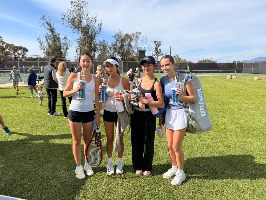 In girls’ singles, sophomore standout Jade Wang was dominant, dropping just 4 games in 5 matches, including a 6-3 finals win over junior Chloe Kalison 6-3 of Villanova High School. The victory follows her win at the Santa Barbara Winter Level 6 USTA Tournament in the G16 division just 5 weeks ago. Sophomore Cate student Elly Edwards also reached the semifinal round, falling 4-6 to Kalison.
