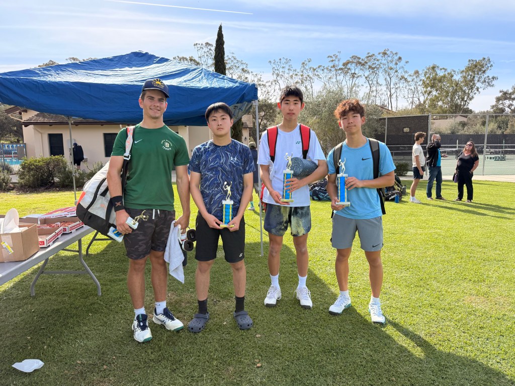 After three rounds on Sunday morning, the two Cate singles players also found themselves on opposite ends in the finals, with Hirofuji and Forry partnering against Li and fellow Cate sophomore Kendrick Suen. The match-up was close from start to finish, with Li/Suen eventually defeating Hirofuji/Forry 7-5 in a tie-breaker to claim the boys’ doubles trophy.
