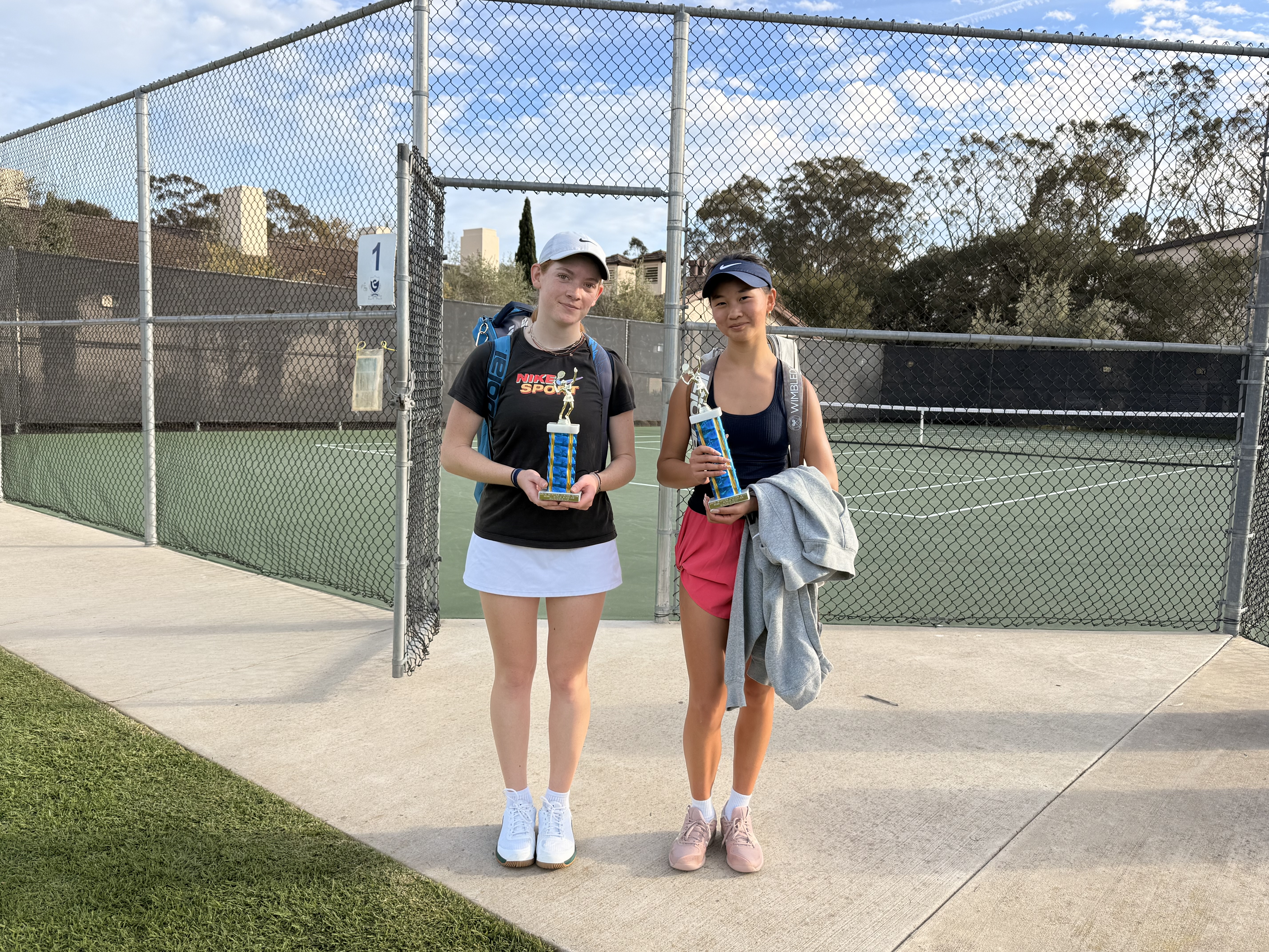 Not to be left out, Cate’s Kendrick Suen and middle-schooler Hannah George received the tournament honors (and TennisWarehouse gift cards) for their excellent sportsmanship throughout the tournament. In addition to Suen’s doubles title performance, both players went 3-0 in their singles groupings on Day 1, proving that winning and sportsmanship can coexist!