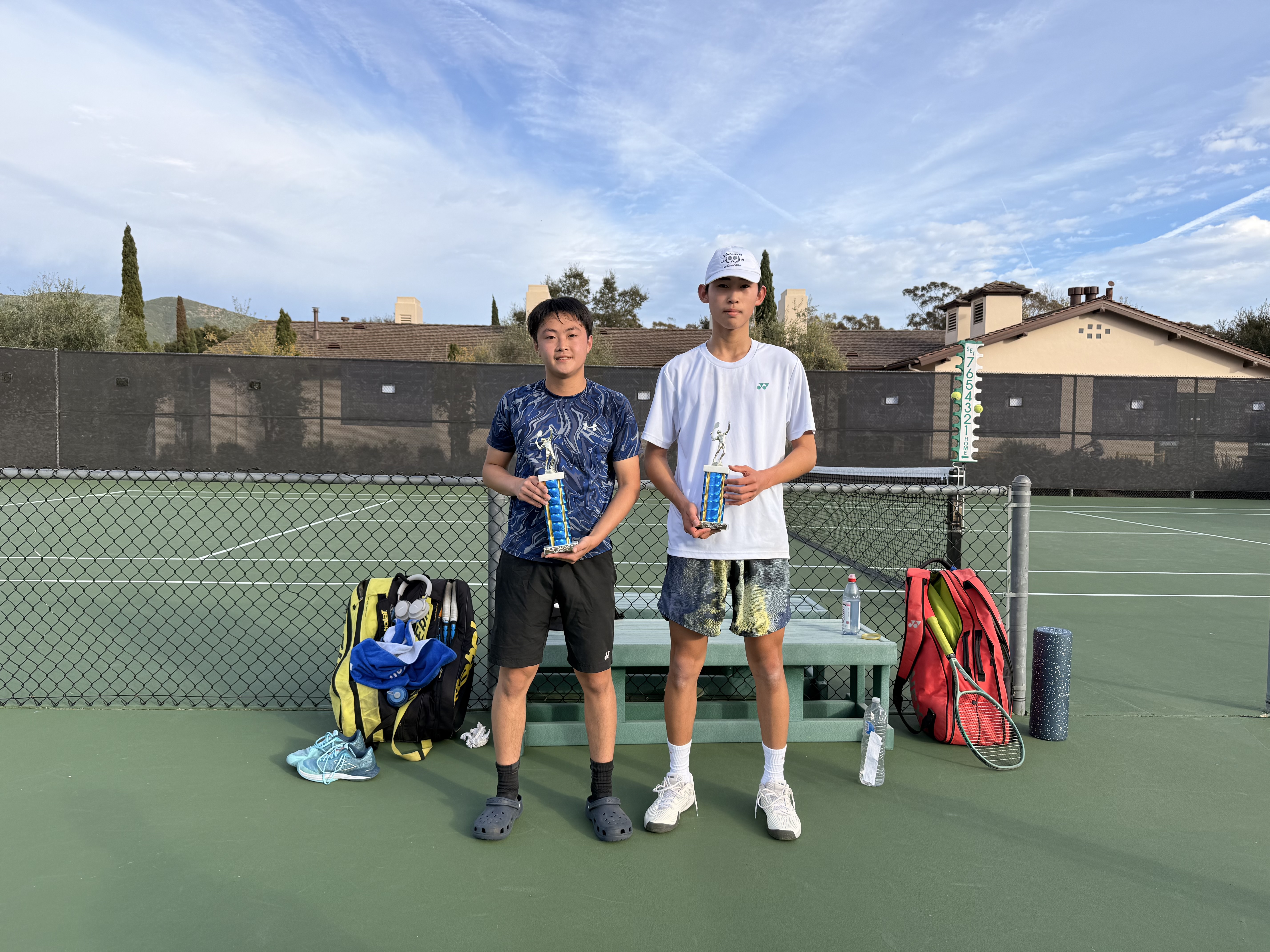 After three rounds on Sunday morning, the two Cate singles players also found themselves on opposite ends in the finals, with Hirofuji and Forry partnering against Li and fellow Cate sophomore Kendrick Suen. The match-up was close from start to finish, with Li/Suen eventually defeating Hirofuji/Forry 7-5 in a tie-breaker to claim the boys’ doubles trophy.