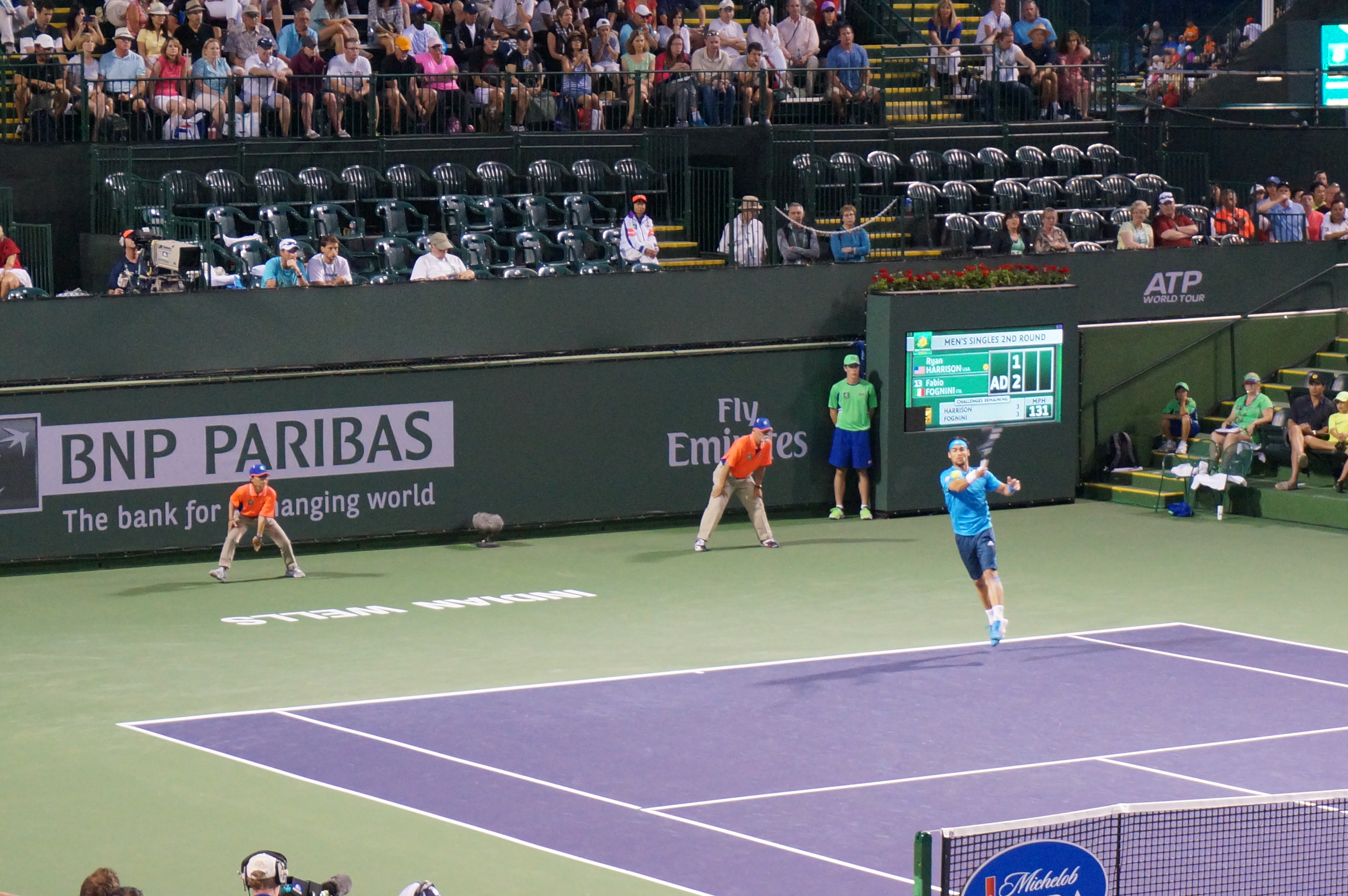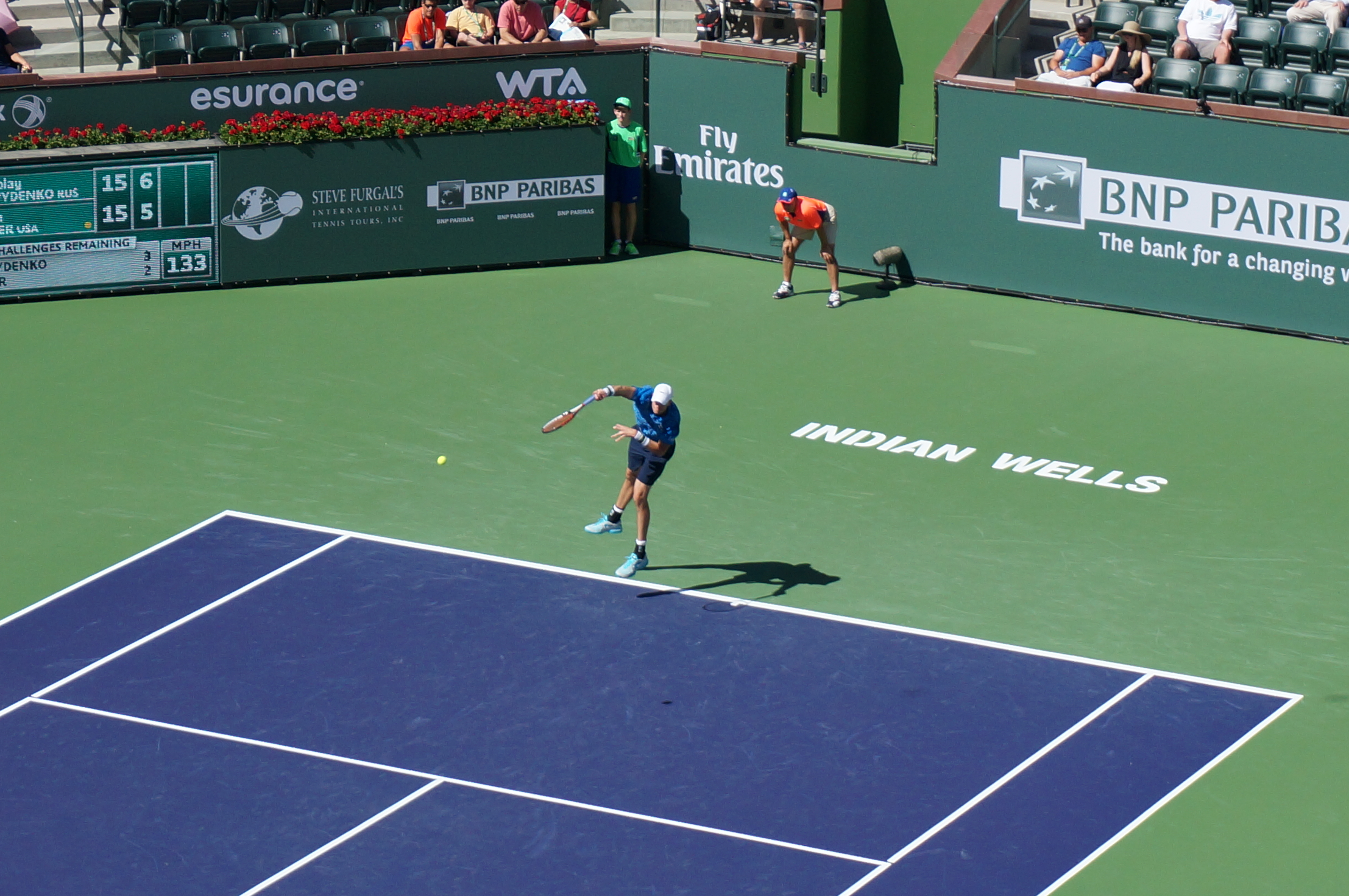 We got to watch some phenomenal tennis players at the Indian Wells Tennis Garden during the Saturday night and Sunday day sessions. Among the list of pros we saw in action were: Rafael Nadal, Stanislas Wawrinka, Thomas Berdych, John Isner, Fabio Fognini, Simona Halep, Dinara Safarova, Radek Stepanek, Leander Paes, Gilles Simon, Nikolay Davydenko, Ryan Harrison, Roberto Bautista-Agut and Julien Benneteau.