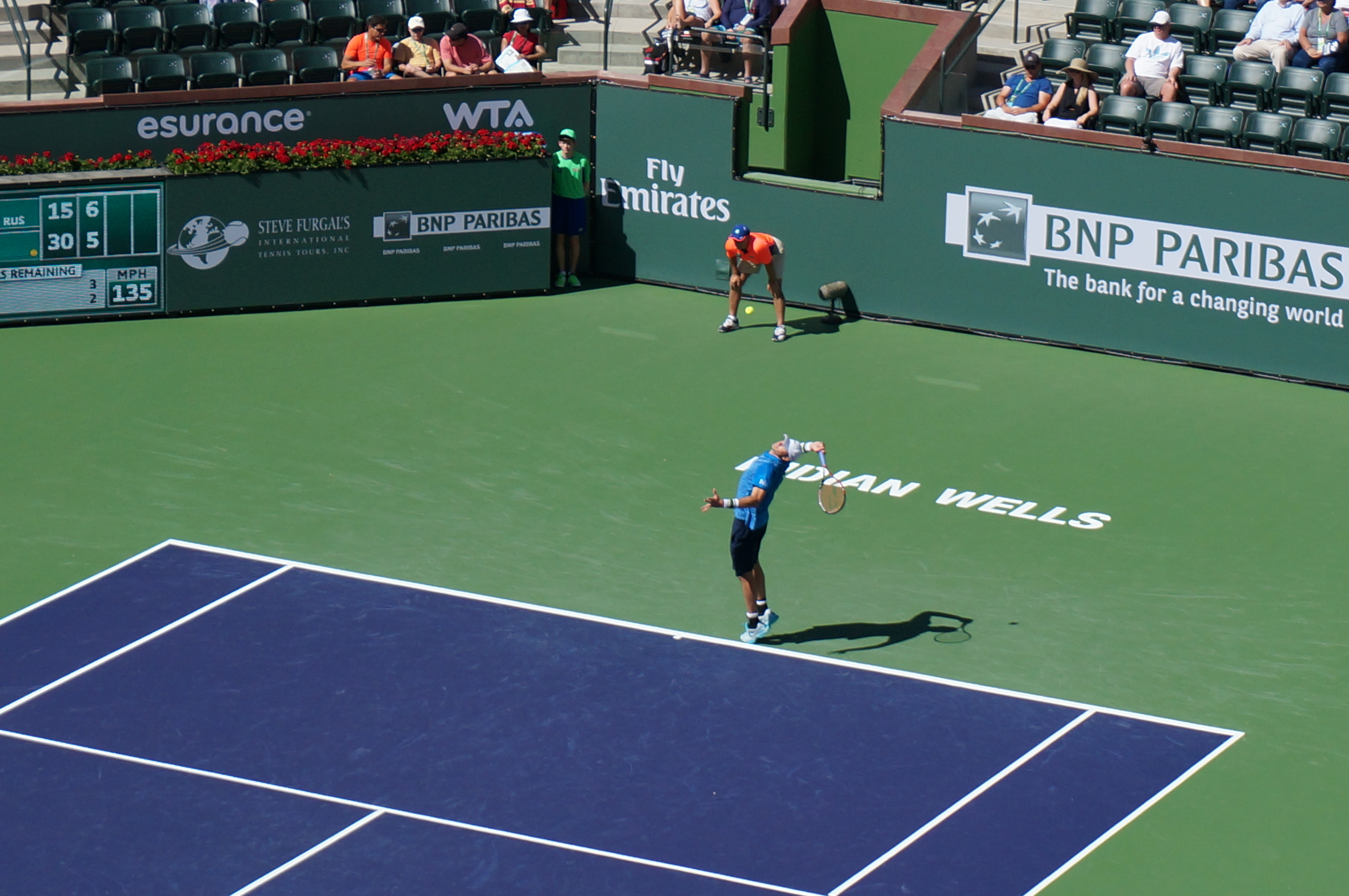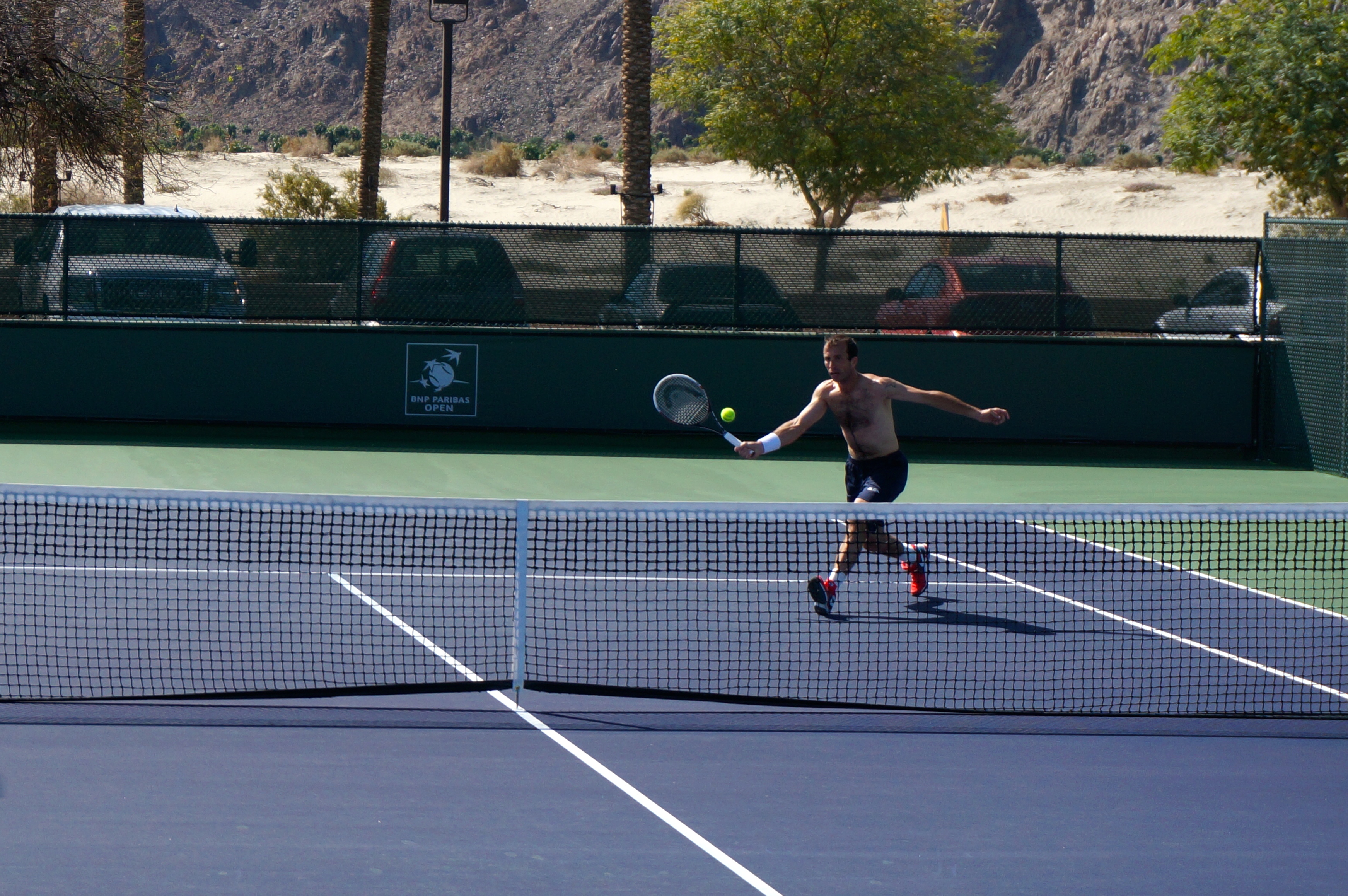 Radek Stepanek on the practice courtsRadek Stepanek with doubles partner Leander PaesStepanek in the foreground, coaching for an upcoming women’s match going on in the backgroundBeautiful day for tennis in Indian WellsNumber four in the world, Thomas Berdych, being upset by the up-and-comer Roberto Bautista-AgutThese guys know how to eat ice cream. Look at that technique!The giant American himself, John Isner, en route to a 7-6, 6-3 win over former consistent top-10 player, Nikolay Davydenko Dinara Safarova in a tight three-setter with world #6, Simona Halep