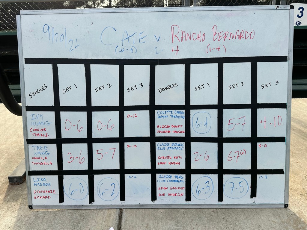 Cate was led by junior Lisa Hasebe, who partnered with Ivy Huang at #1 doubles for an 8-4 win, before leading the charge in singles with a 6-0, 6-4 victory.