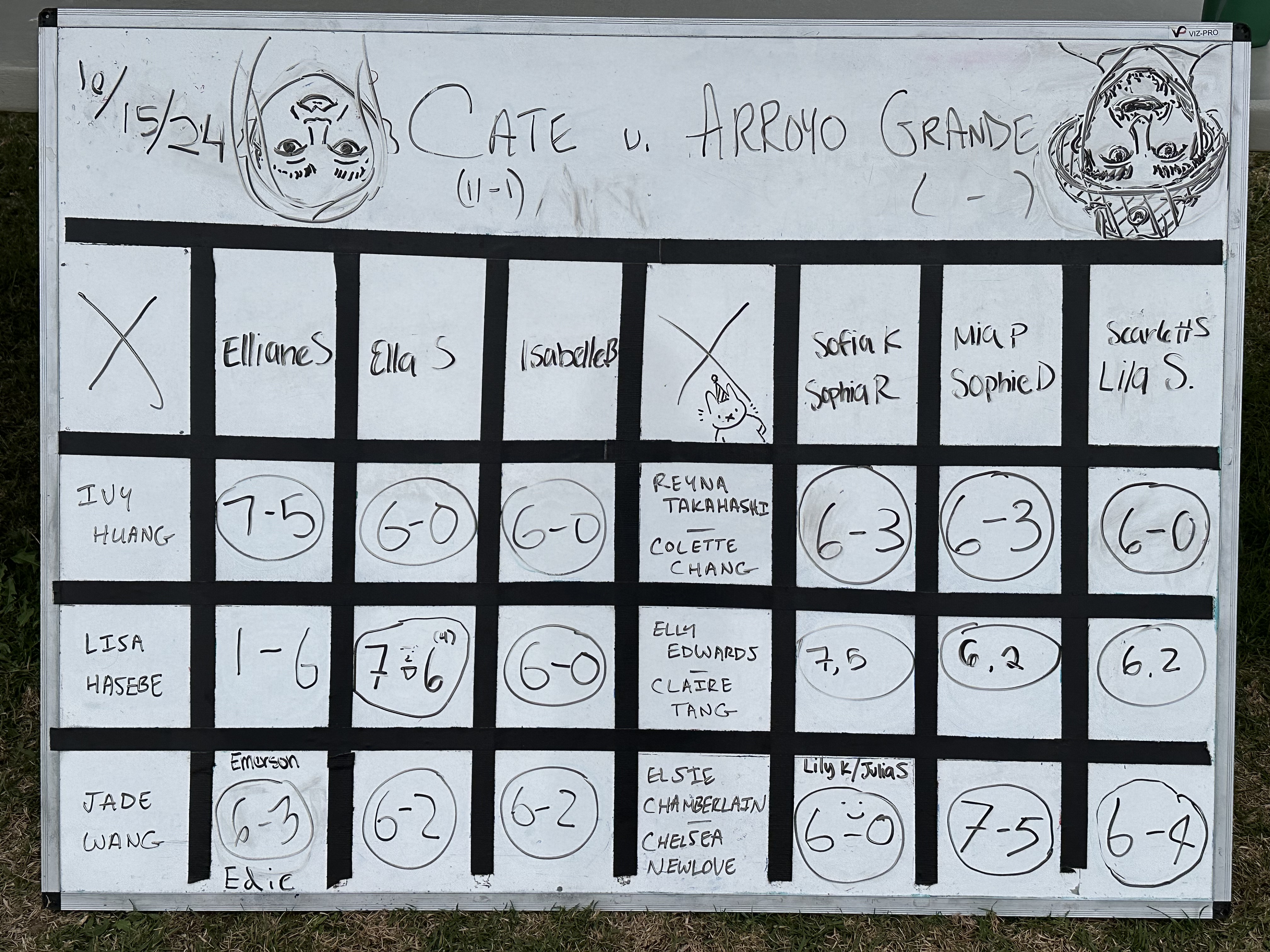 Going back further to last weekend, Cate Girls’ Tennis ventured 2hrs north to play Arroyo Grande High School. The match was played using the Central Section format, with the Rams taking a 7-2 victory.
