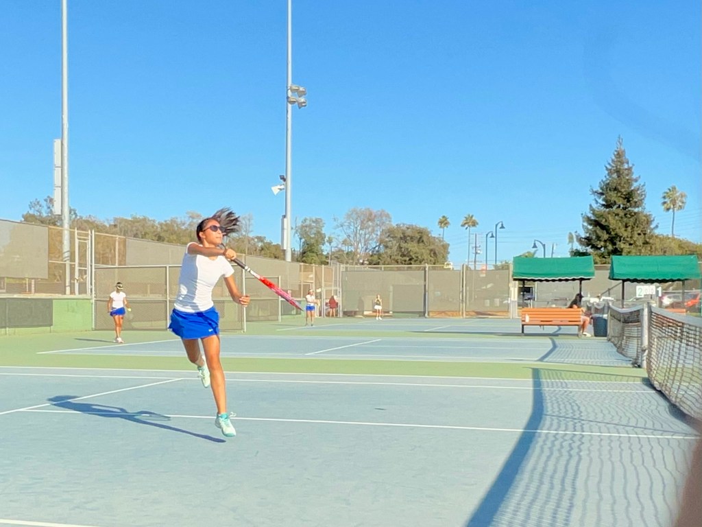 In the first round, senior Aminah Hill struck a devastating blow to Laguna’s chances, defeating their ace #1 singles player Mina Yazadhiev 6-3. Hill finished 3-0 on the day, while junior Ellie Tunnell and sophomore Alyna Takahashi collected two wins each in singles play.