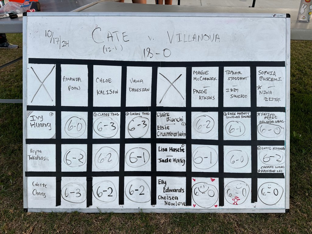 Cate was led by junior Lisa Hasebe, who partnered with Ivy Huang at #1 doubles for an 8-4 win, before leading the charge in singles with a 6-0, 6-4 victory.